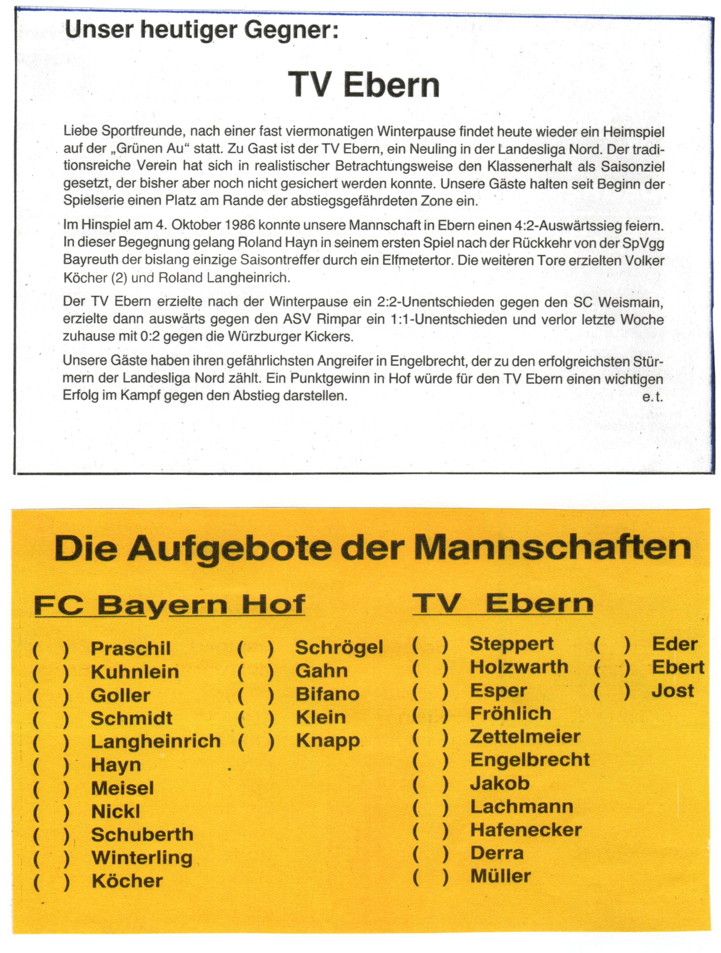 Saison 1986/87 Landesliga Rückspiel gegen Bayern Hof