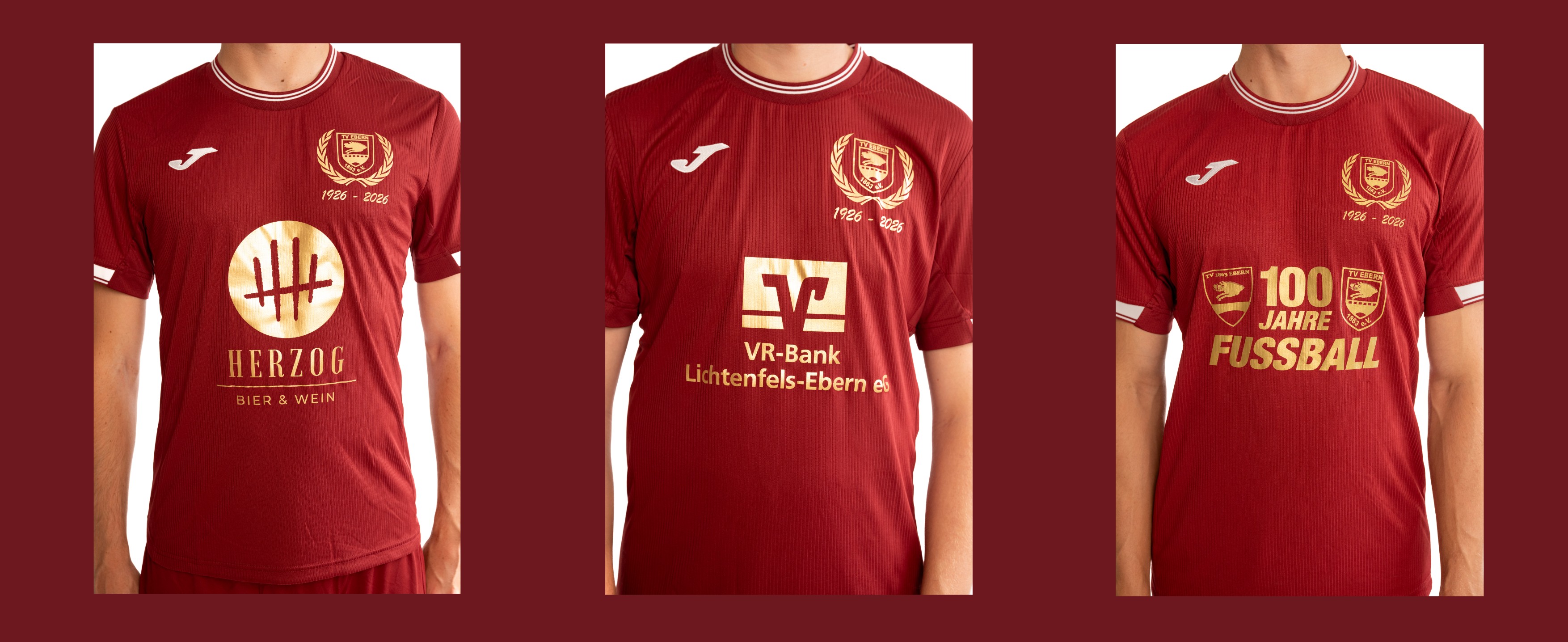 Anlässlich zum 100-jährigen Bestehen der Fußballabteilung werden die 1. und 2. Mannschaft sowie die Jugendteams mit Jubiläumstrikots ausgestattet.